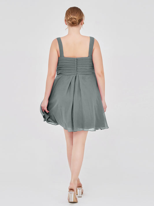 Babaroni PenelopePenelope Escote En V Gasa Corto Vestido De Dama De Honor Gris Acero