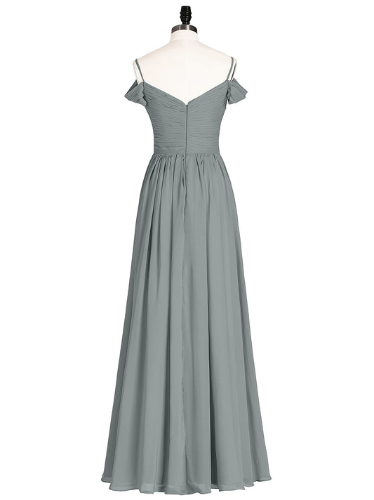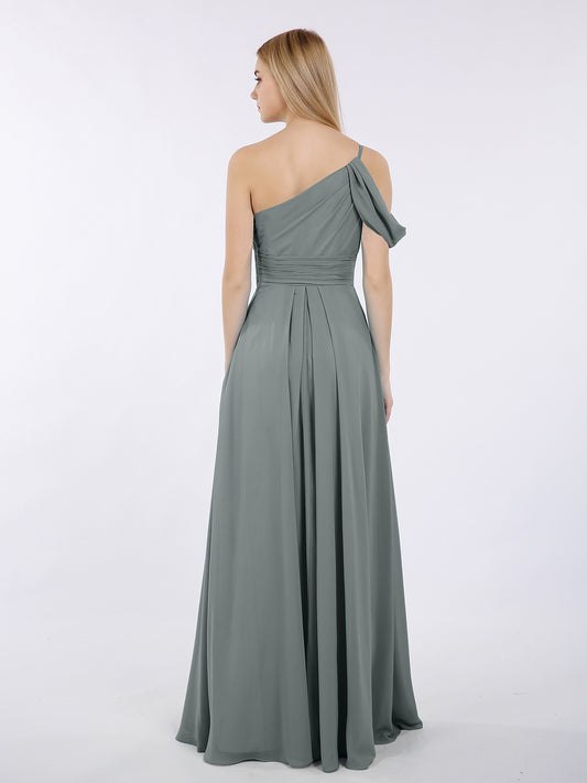 Babaroni PrudencePrudence Un Hombro Gasa Largo Cortes De Dama De Honor Gris Acero