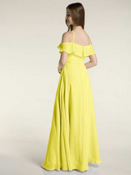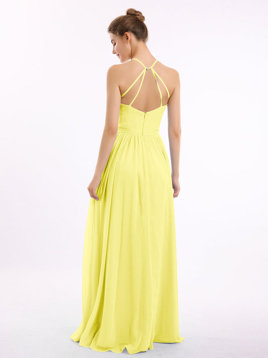 Babaroni LesleyVestidos largos de chiffon estilo halter con doble tirante Limón