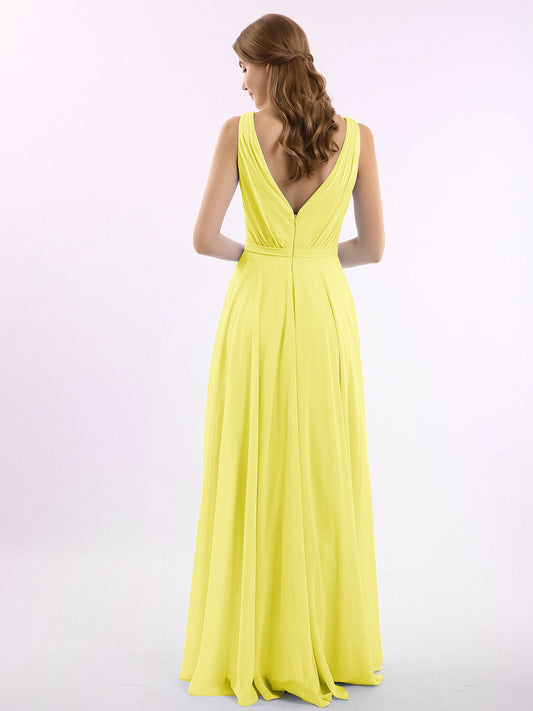 Babaroni VickyVestidos de dama de honor de chiffon con escote en V y tirantes finos Limón