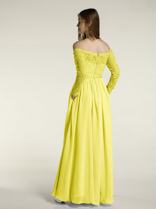 Babaroni MeilaniVestidos de encaje y chiffon con mangas largas y bolsillos Limón