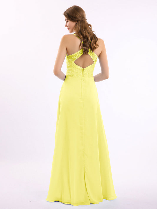 Babaroni LucilleVestidos largos de chiffon con encaje en escote en V profundo y espalda descubierta Limón