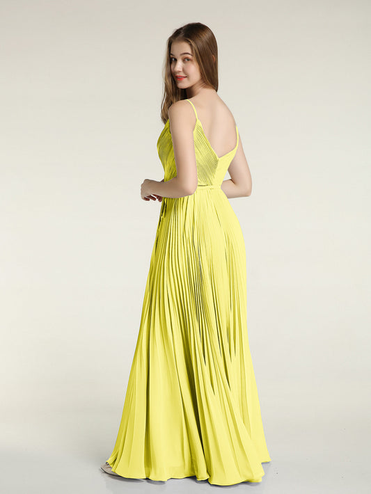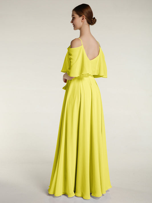 Babaroni MaudSencillos vestidos largos de chiffon con tirantes finos y abertura Limón