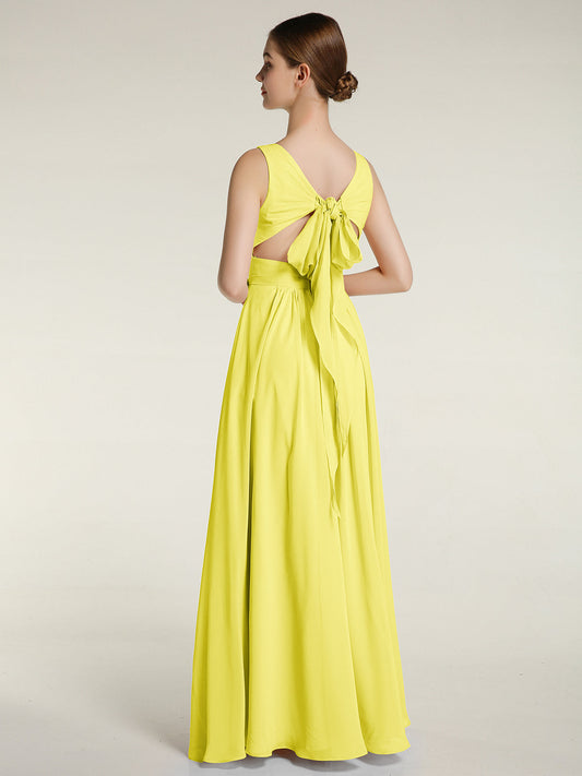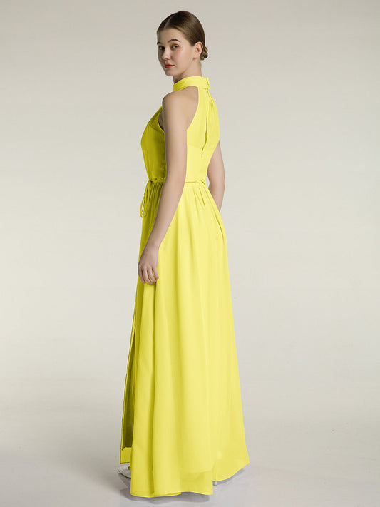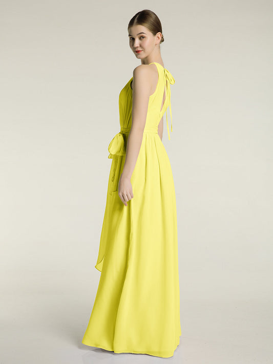 Babaroni JaneVestidos largos de chiffon estilo halter con lazo Limón