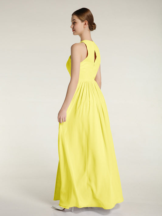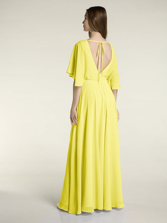 Babaroni LaurenVestidos largos de chiffon estilo princesa con abertura Limón