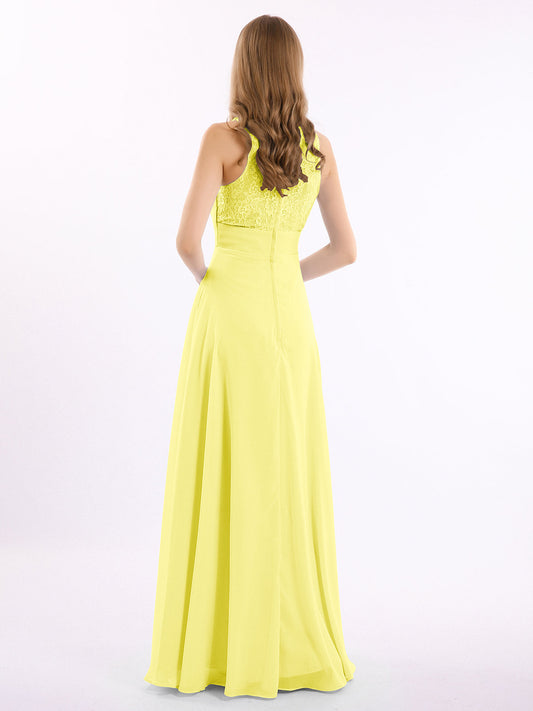 Babaroni LucilleVestidos largos de chiffon con encaje en escote en V profundo y espalda descubierta Limón
