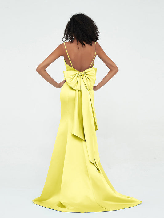 Babaroni MuseVestidos sirena de satén con tirantes spaghetti Limón
