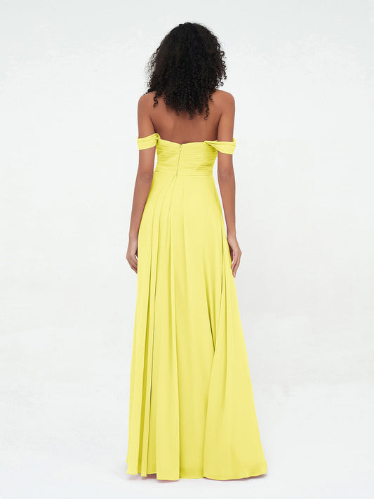 Babaroni VirginiaVestidos máximos de chiffon con falda escalonada estilo off shoulder Limón