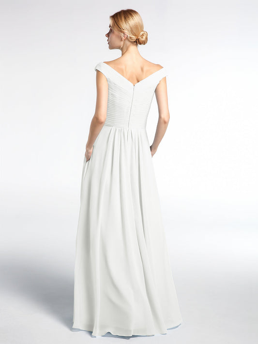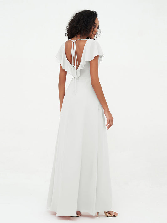 Babaroni PagVestidos estilo A-line de chiffon con escote en V y abertura Marfil