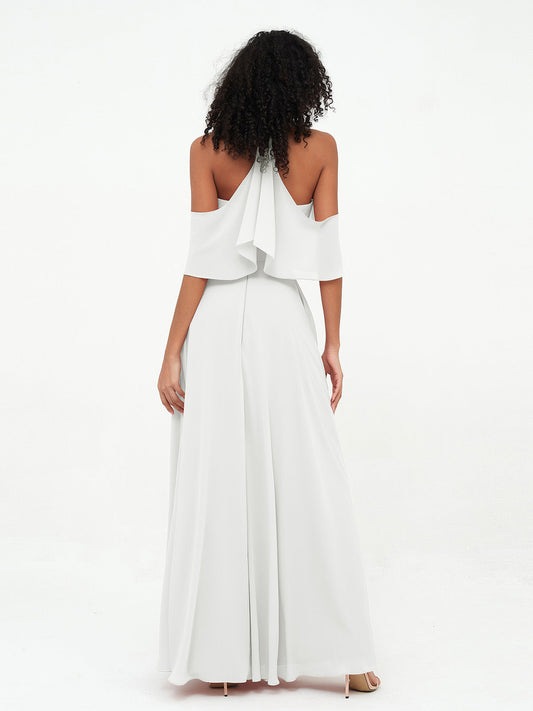 Babaroni IvyVestidos máximos de chiffon estilo halter con hombros descubiertos Marfil