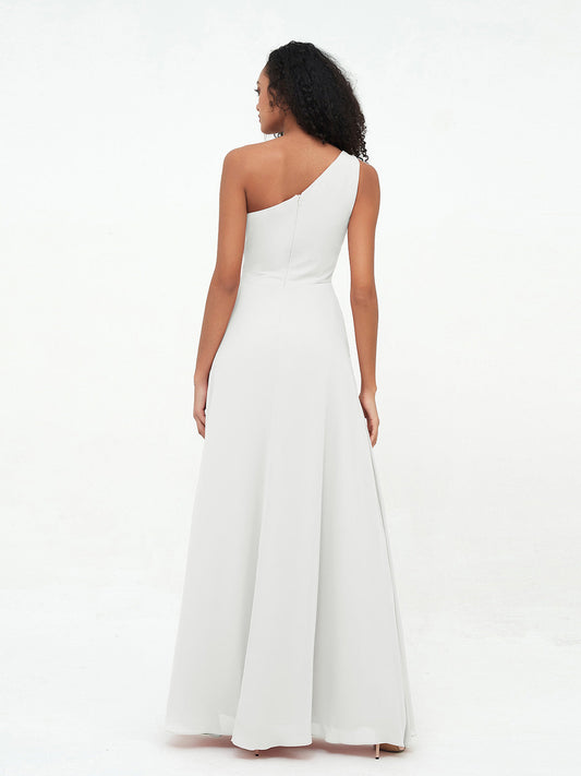 Babaroni XantheVestidos máximos de chiffon de un solo hombro con abertura Marfil