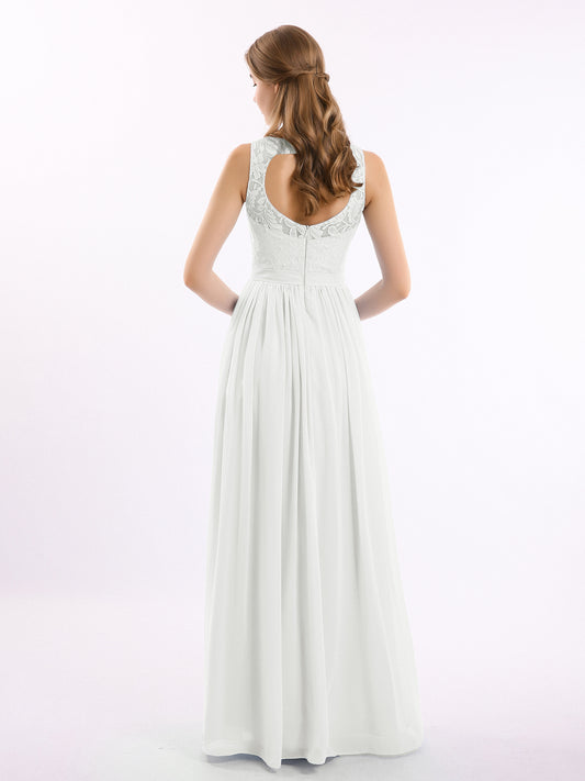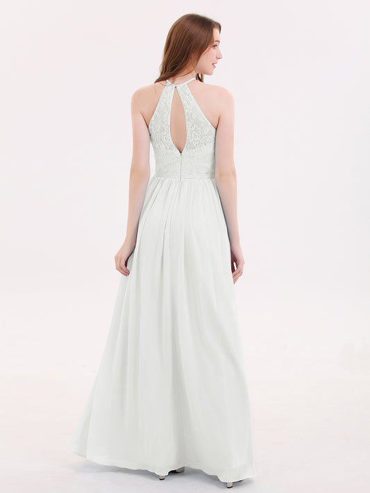 Babaroni AdalynAdalyn Escote En V Gasa Y Encaje Maxi Corte De Dama De Honor Marfil