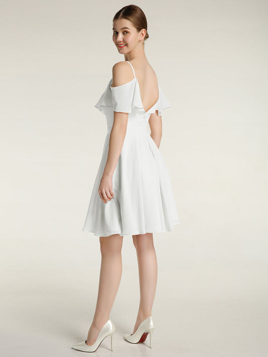 Vestidos de dama de honor de chiffon con escote en V y espalda cruzada Marfil