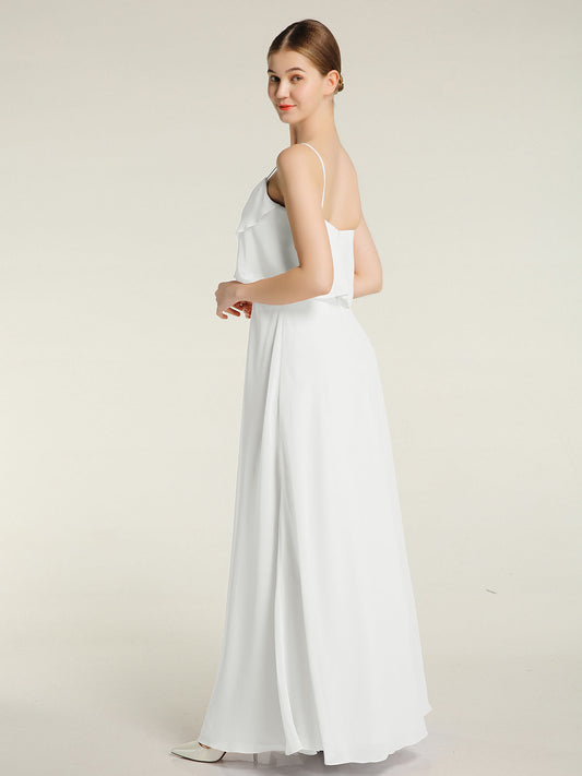Fanny Cabestro Largo Gasa Vestido De Dama De Honor Marfil
