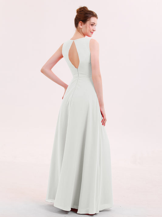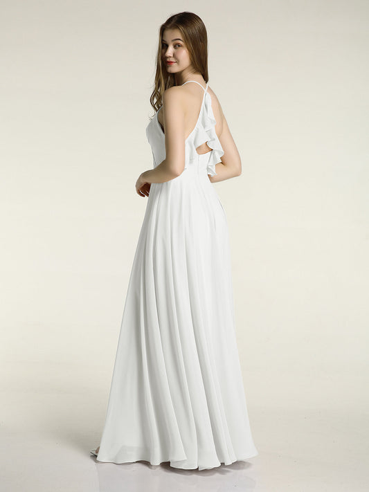 Vestidos largos de dama de honor estilo halter de chiffon Marfil