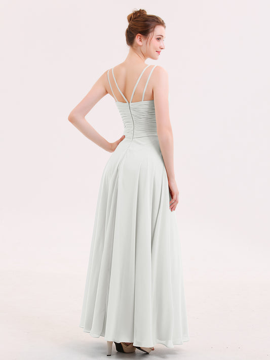 Vestidos sencillos de dama de honor con tirantes finos Marfil