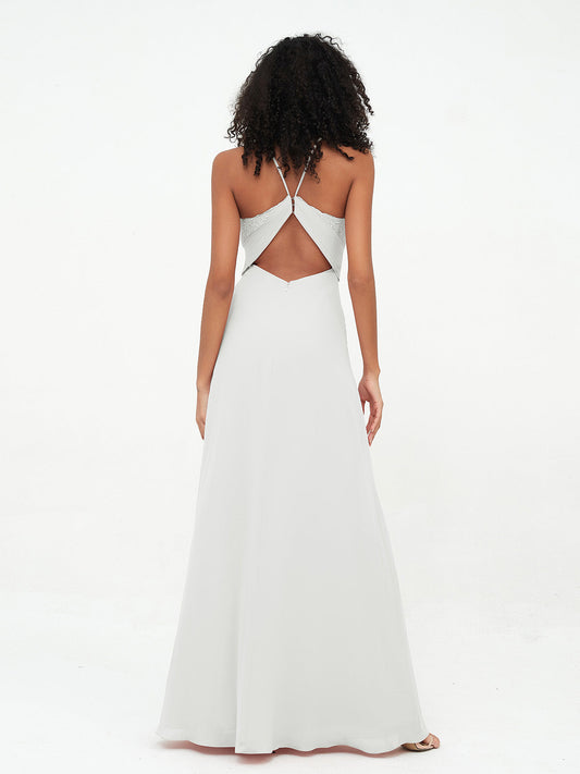 Babaroni FrancesVestidos de halter con top de encaje y espalda descubierta de gasa Marfil
