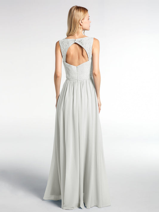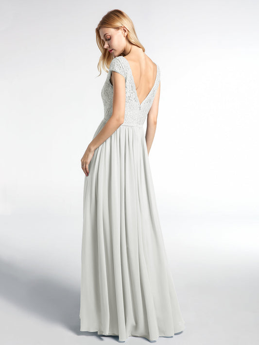 Babaroni LaraineVestido maxi con cuerpo de encaje y falda de chiffon con escote en V Marfil