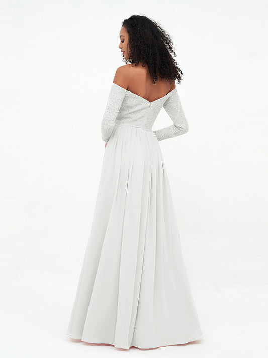 Babaroni JoannaVestidos largos de encaje con mangas largas y hombros descubiertos Marfil
