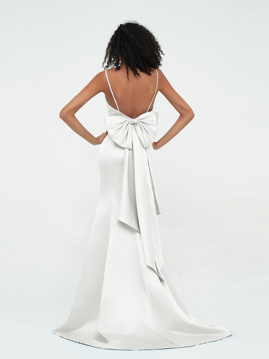 Babaroni MuseVestidos sirena de satén con tirantes spaghetti Marfil