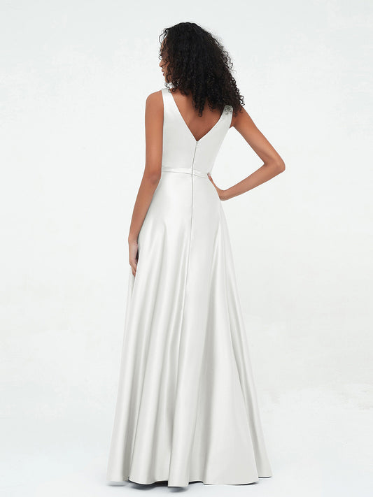Babaroni HannahHannah Escote En V Saten Alto Bajo Vestidos De Dama De Honor Marfil