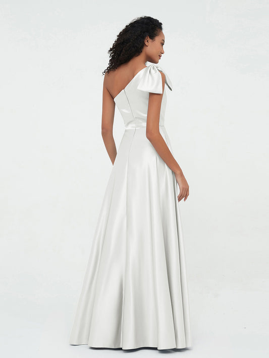 Babaroni PrimroseVestidos largos de satén de un hombro con bolsillos Marfil