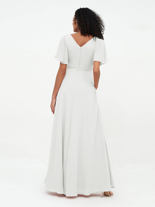 Babaroni YvetteVestidos máximos de chiffon con mangas de volantes y lazo en la cintura Marfil