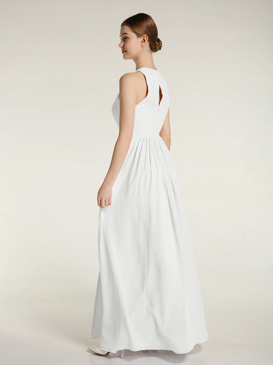 Babaroni AprilVestido sencillo de chiffon estilo halter con abertura Marfil
