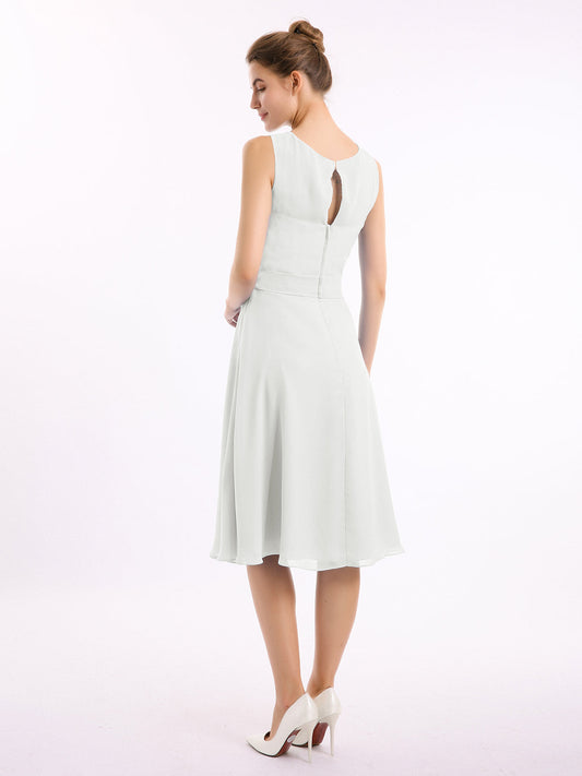 Babaroni IsobelVestido corto de chiffon con cuello tipo scoop y lazo de cinturón Marfil