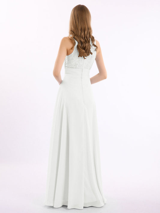 Babaroni LucilleVestidos largos de chiffon con encaje en escote en V profundo y espalda descubierta Marfil