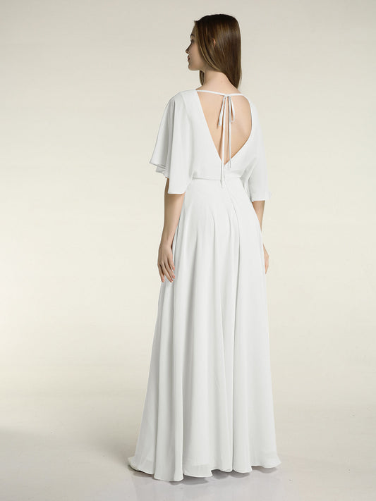 Babaroni MignonVestidos largos de dama de honor de chiffon con mangas de volantes Marfil