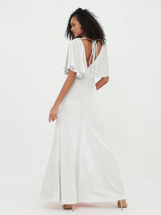 Babaroni BblytheVestidos largos de terciopelo de corte recto con mangas de volantes Marfil