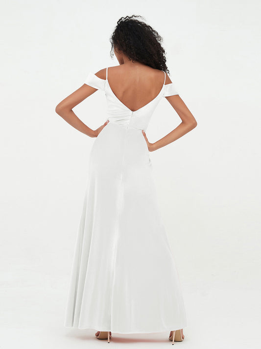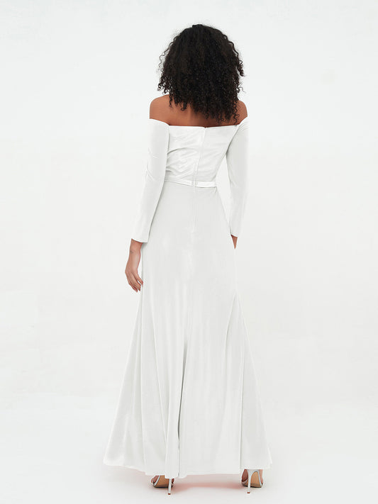 Babaroni BridgetVestidos largos de terciopelo con hombros descubiertos y mangas largas Marfil
