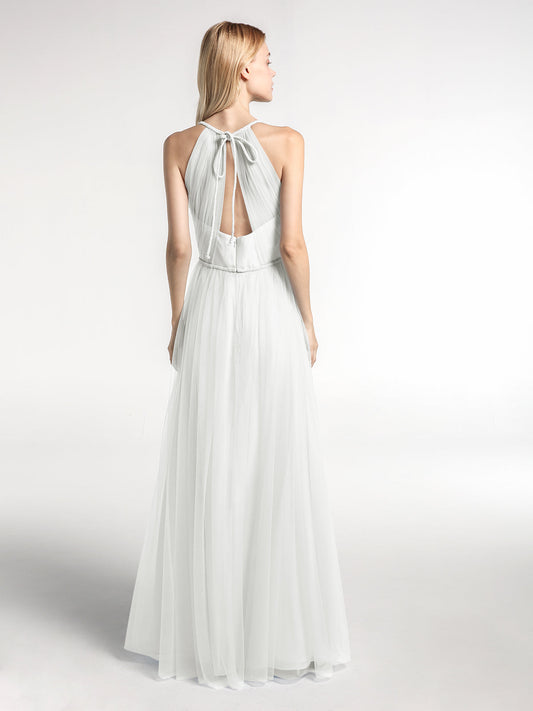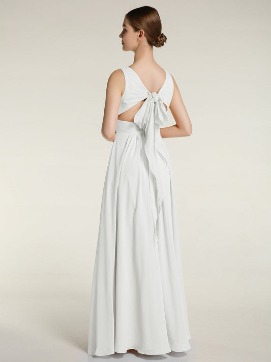 Babaroni BlancheVestido largo de chiffon con escote en forma de cerradura y espalda descubierta Marfil