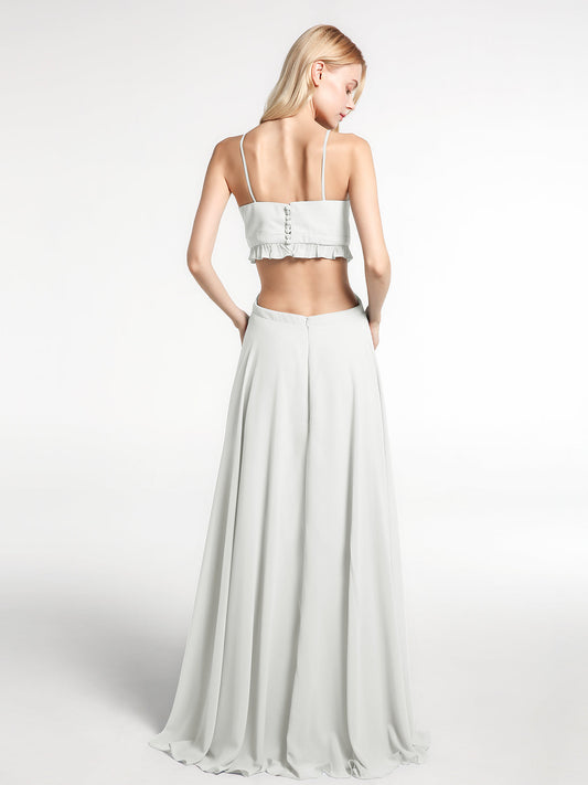 Babaroni EudoraVestido sexy maxi de chiffon con tirantes finos y detalles de volantes recortados Marfil