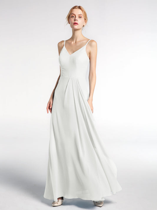 Babaroni NatalieVestido maxi simple de chiffon con escote en V y tirantes finos Marfil