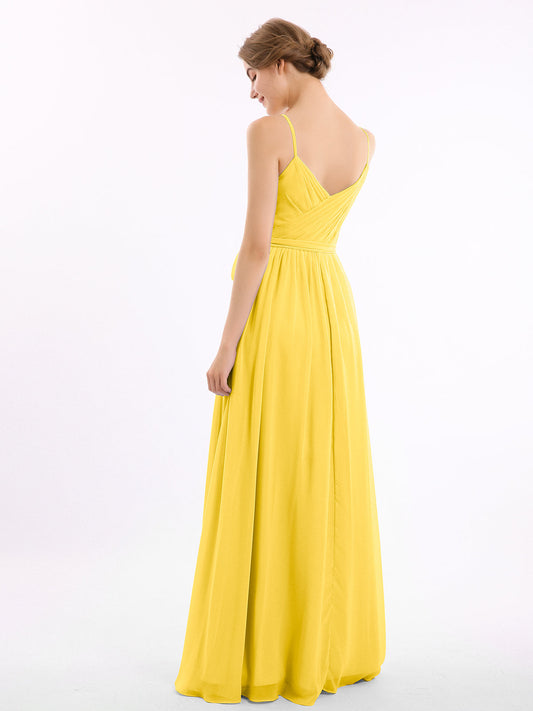 Babaroni VickyVestidos de dama de honor de chiffon con escote en V y tirantes finos Caléndula