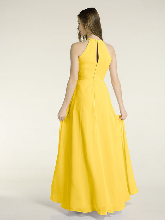 Babaroni TheraVestidos largos de dama de honor estilo halter de chiffon con espalda baja Caléndula