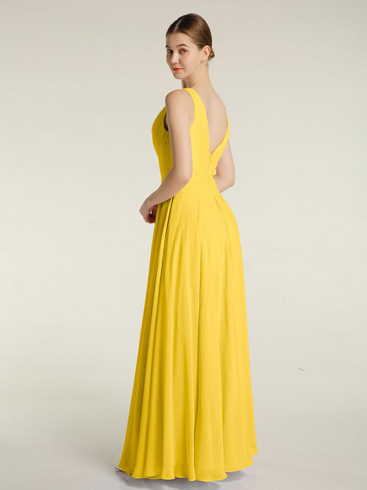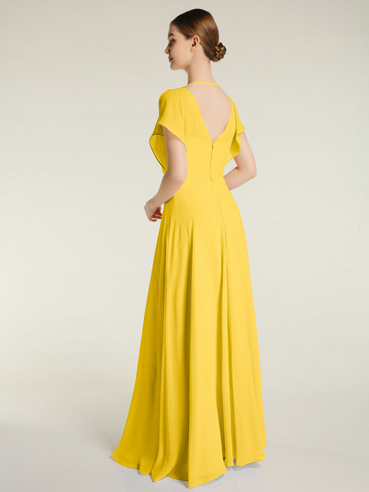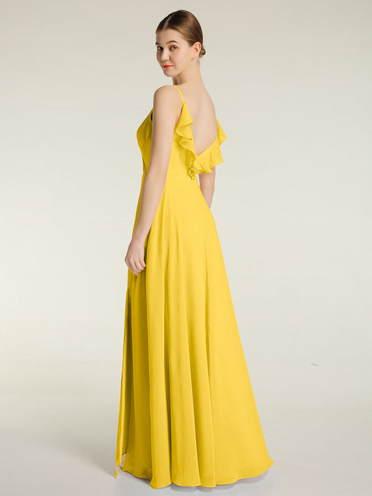 Babaroni CarolVestidos sencillos de chiffon con escote en V Caléndula