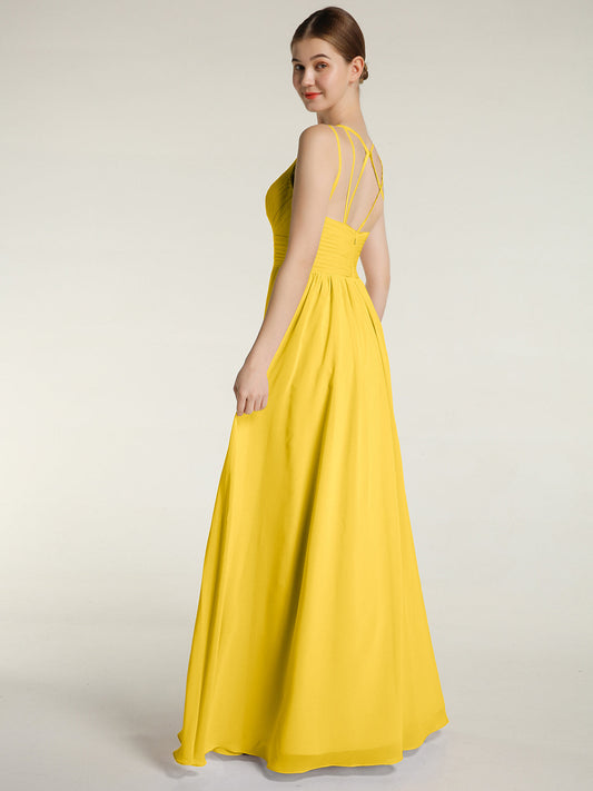 Babaroni FeliciaVestidos largos de chiffon con tirantes finos y escote en corazón Caléndula