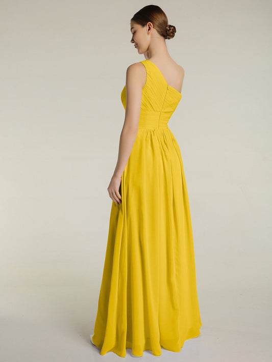 Babaroni MildredVestidos largos de chiffon de un hombro con bolsillos Caléndula
