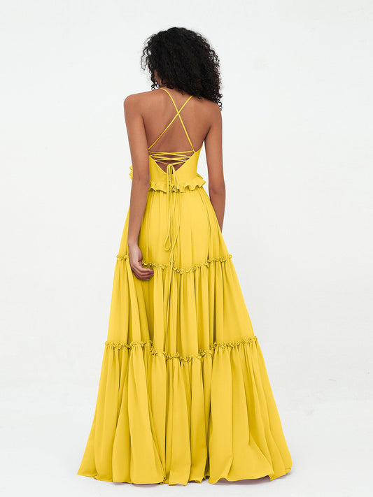 Babaroni UrsulaVestidos máximos bohemios de chiffon con falda escalonada estilo Empire Caléndula