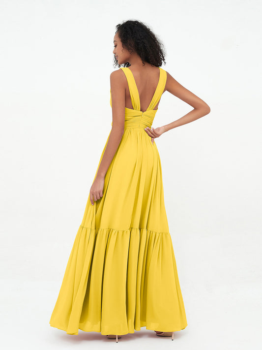 Babaroni DanaVestidos largos de chiffon con escote en V y espalda abierta Caléndula