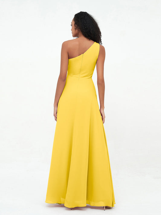 Babaroni XantheVestidos máximos de chiffon de un solo hombro con abertura Caléndula