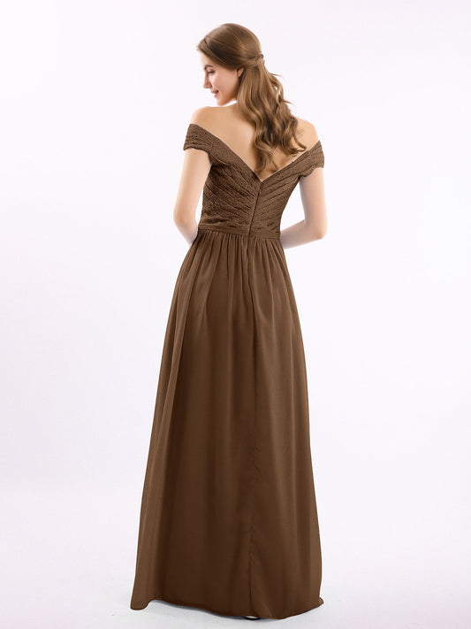 Babaroni NanaVestidos de dama de honor con hombros descubiertos y tirantes finos Marrón