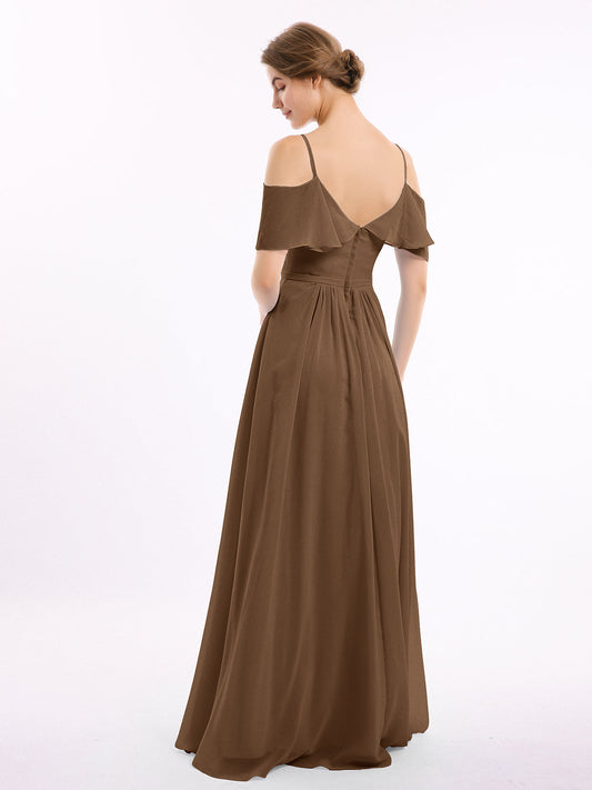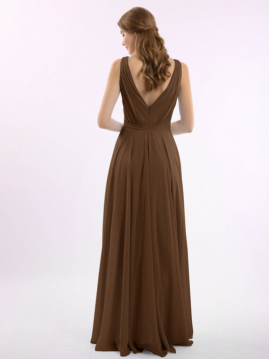 Babaroni VickyVestidos de dama de honor de chiffon con escote en V y tirantes finos Marrón