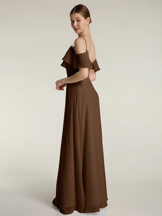 Babaroni EudoraVestido sexy maxi de chiffon con tirantes finos y detalles de volantes recortados Marrón