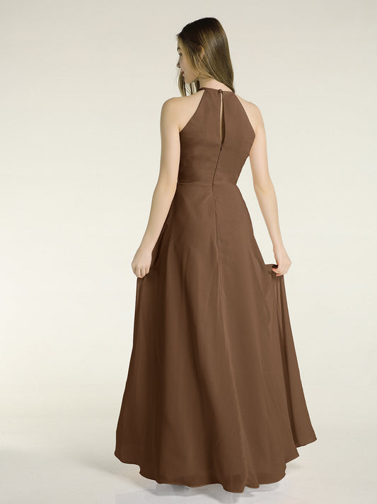 Babaroni MandyVestidos largos de chiffon estilo halter para damas de honor Marrón
