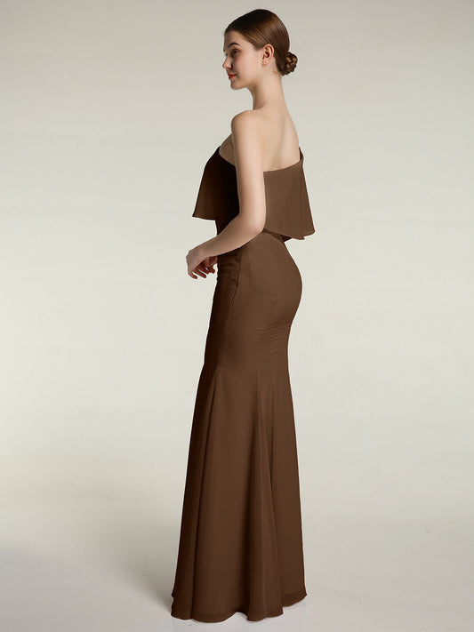 Babaroni JaylaVestidos con mangas de trompeta sexy y estilo sirena con hombros descubiertos Marrón