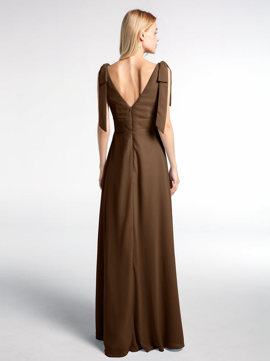 Babaroni VitaVestido de dama de honor de chiffon con escote en V y espalda descubierta Marrón